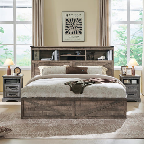 These beds blend classic farmhouse style with clever storage solutions, featuring hidden drawers and compartments to keep your bedroom tidy without sacrificing comfort or design.